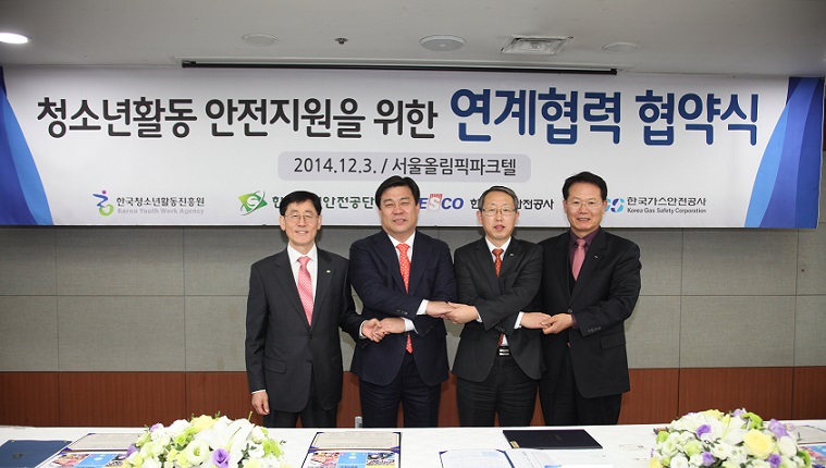 안전한 청소년활동 위해 4개 공공기관 뭉쳤다한국청소년활동진흥원 · 한국시설안전공단 · 한국전기안전공사 · 한국가스안전공사 「청소년 안전 지원 협의체」마련 및 「청소년 안전 지원 연계 협력」약속 ▲ 12월 3일 서울올림픽파크텔에서 한국청소년활동진흥원, 한국시설안전공단, 한국전기안전공사, 한국가스안전공사 등 4개 기관이 「청소년활동 안전 지원 연계 협력 협약」을 체결한 뒤 기념촬영을 하고 있다. (왼쪽부터) 장기창 한국시설안전공단 이사장, 김선동 한국청소년활동진흥원 이사장, 박장식 한국가스안전공사 이사, 박지현 한국전기안전공사 부사장. <사진=한국청소년활동진흥원 제공> □ 청소년들의 안전과 건강한 성장을 위해 4개 공공기관이 뭉쳤다. ○ 한국청소년활동진흥원(KYWA, 이사장 김선동)은 한국시설안전공단, 한국전기안전공사, 한국가스안전공사와 함께 「청소년 안전 지원 협의체」를 구성하고 「청소년 안전 지원 연계」를 위해 협력하기로 하고, 12월 3일 오전 11시 20분 서울올림픽파크텔(서울 송파구)에서 업무협약을 체결했다. □ 주요 협력내용은 ▲ 청소년 안전과 관련한 각 기관의 전문적 분야 ▲ 청소년 수련시설 종합 안전 점검 및 안전관리 연계 사업 ▲ 청소년 안전과 관련한 정보·교육·교류 및 기타 상호 협력을 필요로 하는 분야 등이다. □ 이들 기관은 이번 협약을 통해 청소년의 안전과 건강한 성장 발전에 기여하고 청소년활동 안전을 위해 협력하기로 하고 청소년수련시설 안전점검 등을 추진할 계획이다. □ 한편, 올해 개정된 청소년활동진흥법에 따라 KYWA로 수련시설 안전 점검 업무가 이관되었으며, 청소년 안전 지원 협의체는 올해 초부터 지속적으로 시설 안전점검을 시행해왔다. ○ 이번 협약으로 내년부터 전국 청소년수련관과 청소년문화의집을 대상으로 운영되는 「청소년수련시설 종합 안전점검」업무를 시작으로 청소년 안전에 이바지할 것으로 기대된다. □ 김선동 KYWA 이사장은 “이번 협약을 통해 보다 안전한 청소년활동 여건을 마련하는 장이 될 것으로 기대되며, KYWA의 주요 정책과제 중 「안전하고 신뢰받는 체험환경의 조성」을 구체적으로 실현하는 밑거름이 될 것으로 생각한다.”고 말했다. □ 한국청소년활동진흥원(KYWA)은 청소년정책 사업을 수행하는 여성가족부 산하 준정부기관으로서, 「청소년활동 프로그램의 개발과 보급」, 「청소년활동 체험의 기회 마련 및 활성화」, 「안전하고 신뢰받는 체험환경의 조성」, 「청소년자원봉사 및 국내외 청소년교류활동의 진흥」, 그리고「청소년 지도자의 양성 및 교육」 등 정책과제를 내실 있게 추진하고 있다. ○ 아울러 전국 거점지역에 국립청소년수련원 2개소 및 우주활동, 농업생명, 해양환경의 특화된 국립청소년체험센터 3개소 등 5개소의 국립청소년활동시설을 운영하고 있다. |