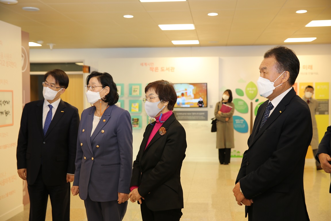 ▲(좌측부터) 이광호 한국청소년활동진흥원 이사장, 이정옥 여성가족부 장관, 이미경 한국국제협력단 이사장, 김전승 국립중앙청소년수련원 원장이 개관식을 마치고 시설을 둘러보고 있다.