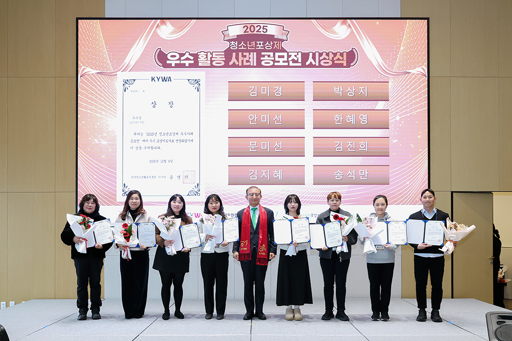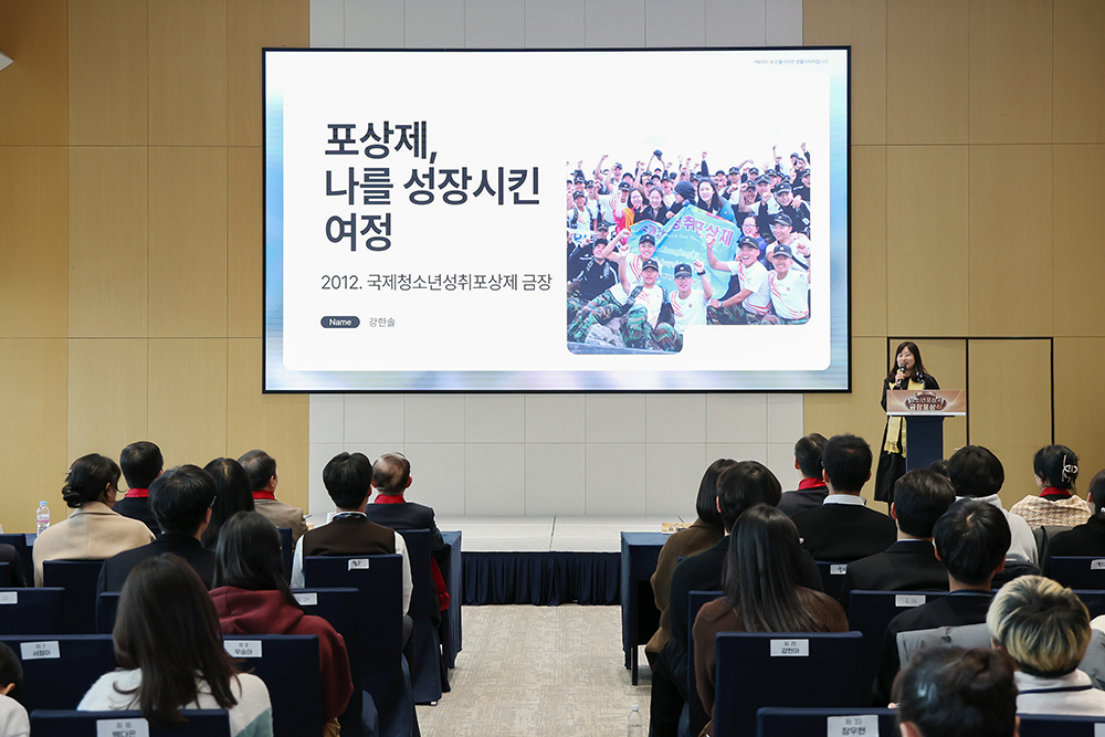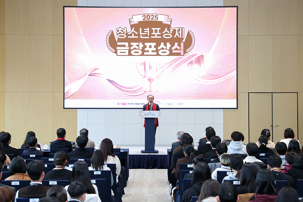 한국청소년활동진흥원(이사장 손연기)은 12월 6일, 오후2시 잠실SKY31 컨벤션에서 2025년 청소년포상제 금장포상식을 개최했습니다. 청소년포상제(국제청소년성취포상제 및 청소년자기도전포상제)에 참여하는 청소년들의 자긍심을 고취하고 포상제를 활성화하기 위해 마련된 이번 포상식에는 금장 포상청소년 및 공모전 수상자, 포상지도자, 학부모, 청소년계 인사 등 280여명이 참석했습니다. 손연기 이사장은 금장 포상청소년 46명(국제청소년성취포상제 20명, 청소년자기도전포상제 40명)에게 포상인증서를 수여하고 스스로의 활동목표를 완수한 청소년들을 격려했습니다. 또한 청소년포상제 우수 활동사례 공모전을 통해 선발된 청소년, 지도자, 운영기관에는 성평등가족부 장관·표창상(17점), 한국청소년활동진흥원 이사장상·표창(29점)을 수여했습니다. 특히, 이번 포상식에는 국제청소년성취포상제 국내 1기 금장포상자, 강한솔 지도자가 함께 하여 ‘나에게 포상제란?’이라는 주제로 특강을 진행하였으며, 2025년 국제금장총회에 참여한 김단우, 최서윤 금장청소년의 활동 사례 발표가 있어서 더 의미가 있었습니다. |